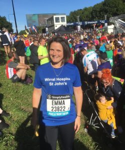 Last year Emma, with hospice nurses and colleagues, Anita and Ceri, completed a bike-run-bike, triathlon. After completing the Great North Run, in 2019, for the hospice she then jointly organised a Race Around Wirral relay event with some colleagues and friends, complete with socially distanced, (remember that), handovers.