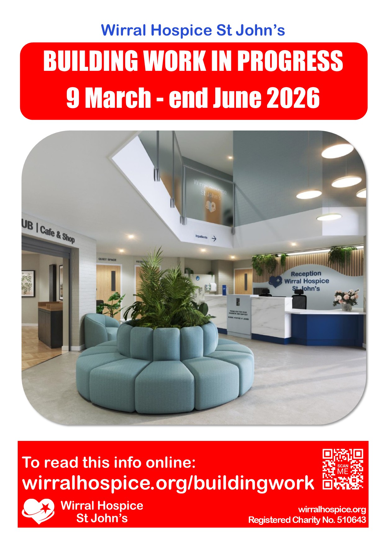 - There will naturally be some disruption to how people enter and exit parts of our building during this work, but we will have signposts in place and helpful volunteers to point you in the right direction.